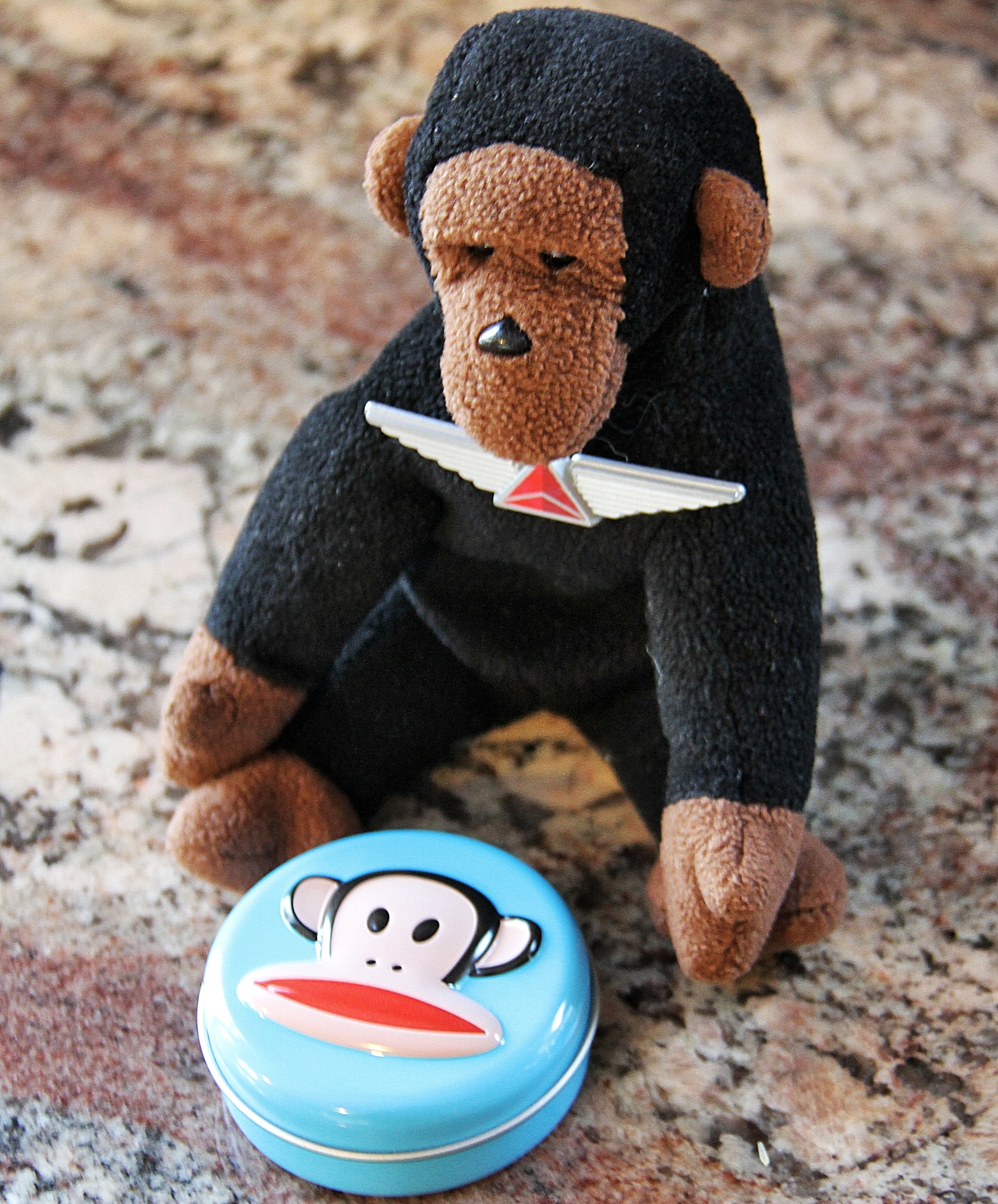 So when Kongo finally got around to opening the container, he was surprised to see it filled with about 100 little banana-shaped mints!  Kongo knows he’s going to be a big hit when he shares this treasure with the flight crew as he starts his 2013 travel schedule on Monday morning!  Thanks, Santa!