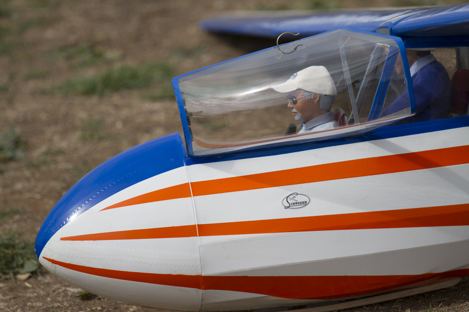 While in the air the pilots control the aircraft flight by manipulating the rudder and flaps via a remote control. With dozens of hang gliders, birds, and other models flying about keeping clear of everything is a full time job that takes a lot of concentration.