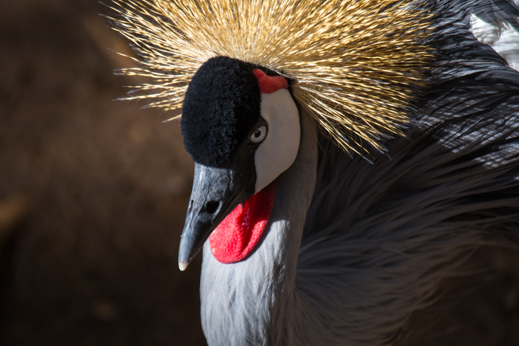 After spending some time with the Sumatran Tigers yesterday, Kongo found this East African Crowned Crane at San Diego’s Safari Park. This bird was all decked out for the holidays with an impressive crown, Christmas red wattle, and a fuzzy little beret that seemed to come straight from 5th Avenue.